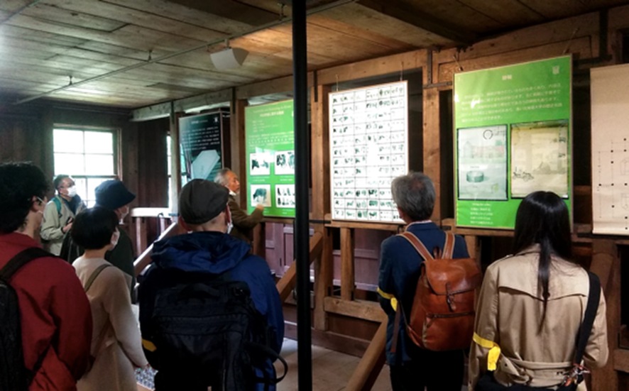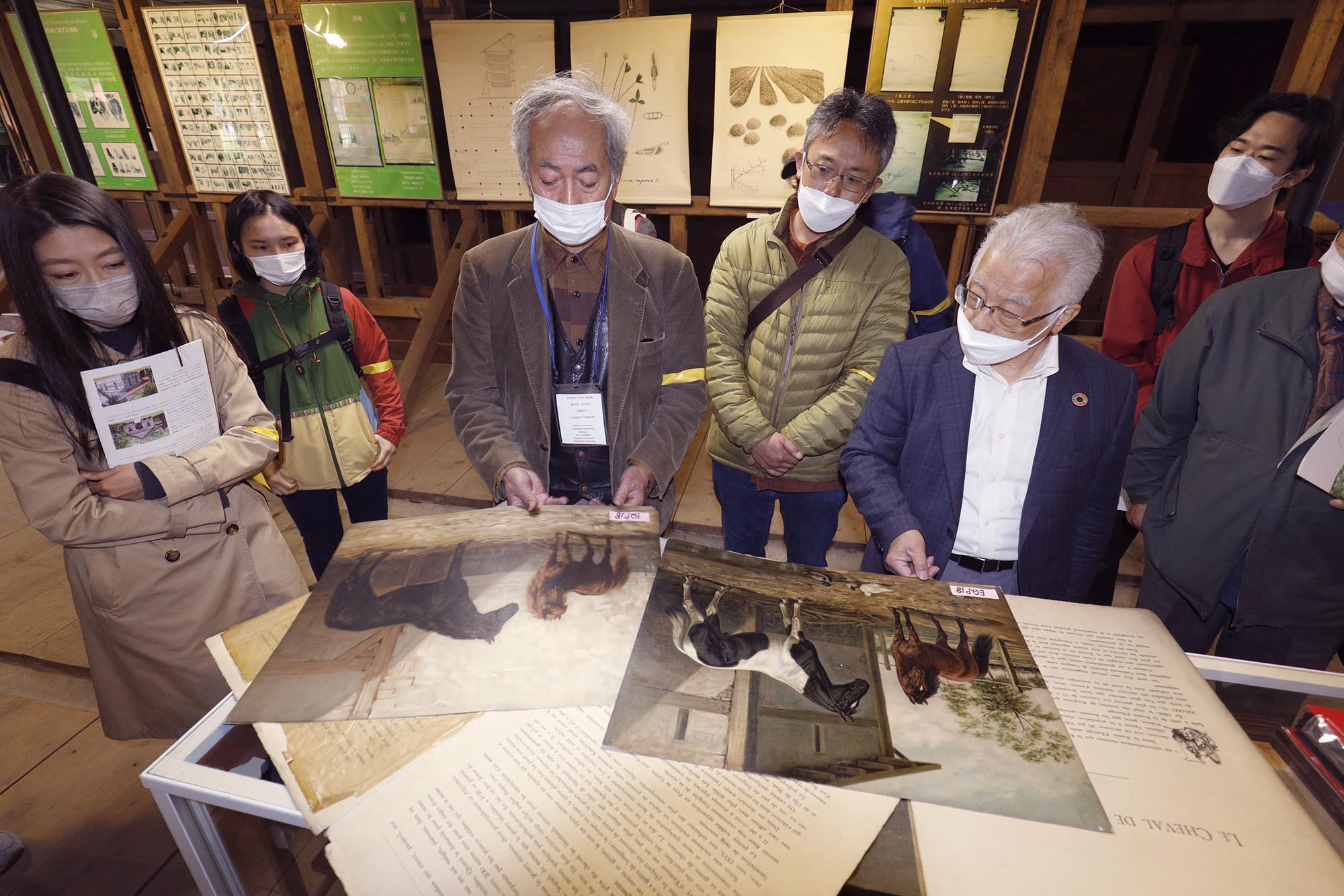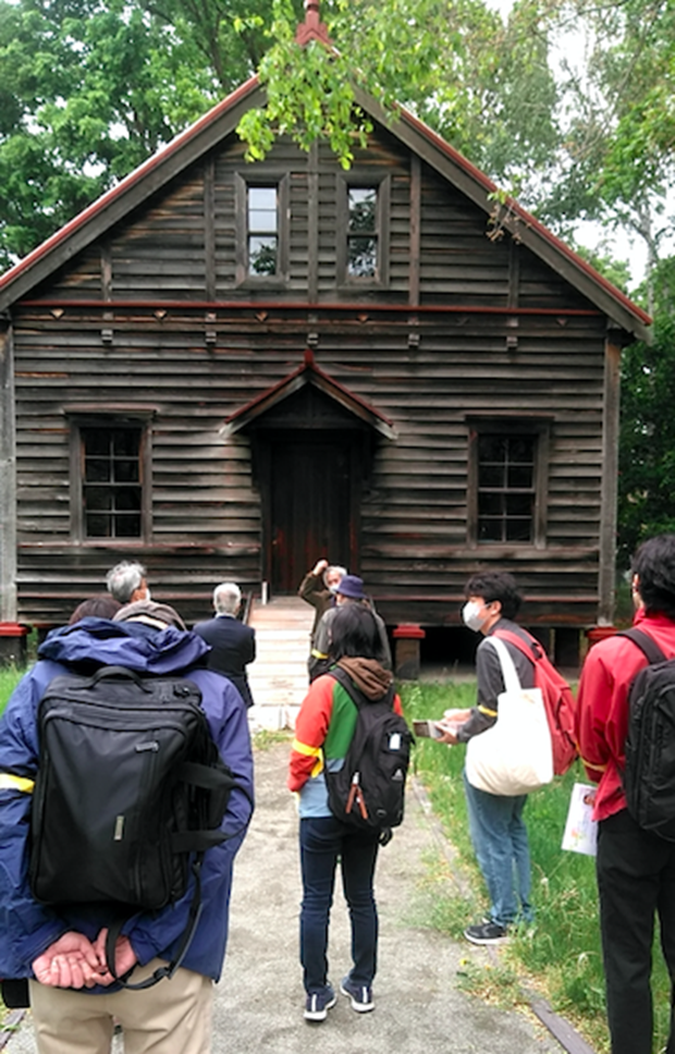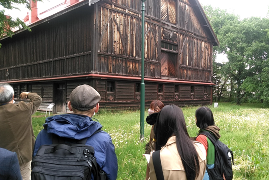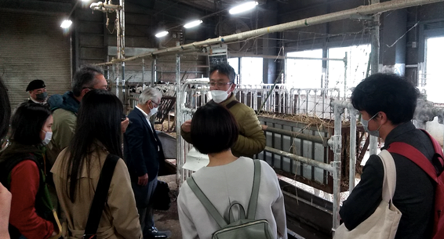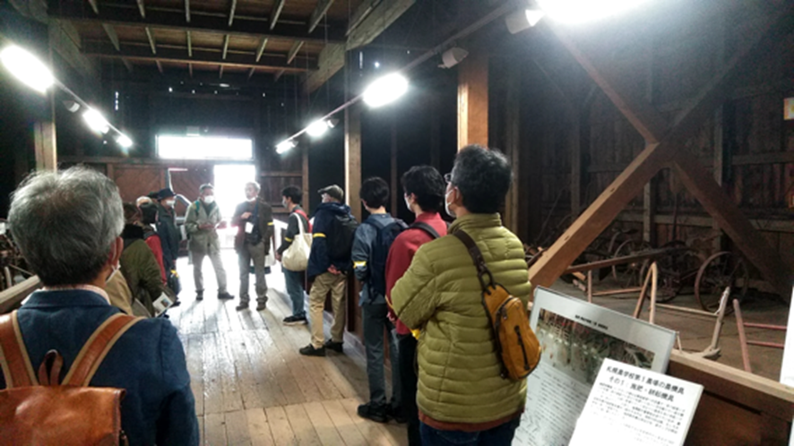 札幌本部 2022.06.04 サポーターたちが札幌農学校第2農場と現北大牧場を見学 札幌農学同窓会のメディア拡充プロジェクトと「お宝」発掘発信プロジェクトに取り組んでいる「さっぽろ農学校サポーター」の学生たちが5月29日、『札幌農学校第2農場』と現在の北大牧場を見学した。サポーターたちは、北大のルーツの一つと言える施設群の中で、札幌農学校の歴史を伝える「お宝」の数々に直接触れ、牛の血統や持続可能なシステムが現在に引き継がれていることを学び、プロジェクト推進へ気持ちを新たにしていた。 【モデルバーンを見学する参加者たち】 『札幌農学校第2農場見学会・研究交流会』と銘打ち、同窓会の要請に応えて下さった北大総合博物館の近藤誠司名誉教授と農学研究院畜産科学科の三谷朋弘准教授がガイドを担当。サポーターとリポーターの学生たち8人のほか、同窓会の役員ら関係者6人、またプロジェクトに参加されている出版社である寿郎社の土肥寿郎社長、下郷沙季編集者の2人も参加された。コロナ禍のため各施設とも屋内の一般見学は現在休止中だが、今回は特別の計らいで、主要施設の内部も見学した。 【札幌農学校時代の講義で用いられた動物画や植物画などの資料(モデルバーン1階)】 1877(明治10)年に設置され、1969(昭和44)年に国の重要文化財に指定された札幌農学校第2農場は、モデルバーン(模範家畜房)、コーンバーン(穀物庫)、種牛舎、牝牛舎等の建築物で構成されている。明治時代には牛と馬、豚を飼育し、牛から搾乳した生乳はチーズやバターに加工して流通させていた。 【かつては冬に乾草が詰まっていたモデルバーン2階には現在、当時の輸入農機具が展示されている】 人が利用できない草を食べさせて乳製品や肉などを利用、糞尿は牧草地に還元して草の肥やしとし、根菜類や生乳加工の際に生じるホエーなどは豚に与えるといったサステナブルなシステムが当初から存在しており、今日の「SDGsの北大」につながっている。 【トウモロコシなどの穀類を貯蔵していたコーンバーンの内部には現在、鍬などが展示されている】 モデルバーンの建物の中では札幌農学校時代に講義の資料として用いられていた掛け軸や当時の植物画、播種機やマニュアスプレッダー、プラウなど欧米から輸入された多くの畜力式農業機械、馬具などが展示されていた。また、普段は倉庫内に大切に保管されている札幌農学校時代の牛と馬の標本図や、牛の戸籍である「牛籍簿」、厚い皮表紙の備品購入簿、「札幌農学校校則」などの「お宝」も、直接見せていただいた。 コーンバーンには明治時代に使用された様々な種類の鍬をはじめとする農具類が展示されており、この大きさの鍬を扱っていたのかと驚いた。 【生物生産研究農場の牛舎内部には、産まれたばかりの子牛が元気にはねていた。この仔も日本初導入の3系統の一つであった】 続いて三谷朋弘准教授案内のもと現在の北大第1農場の施設を見学した。ちょうど牛舎から牧草地へと放牧が始まる時刻で、参加者たちは屋内外の様子を見学できた。130年以上前の1889年に日本で初めて導入されたホルスタイン種3頭の血統が札幌農学校と北大で守られている。その大切な牛達を間近に見ることができた。技術職員の方々が牛や羊のお世話を懸命に行なっている様子が印象的であった。 【第1農場に放牧され、生の草を食べている牛たち。先祖代々、この牧草地周辺で暮らしてきた】 最後に北大正門近くの「北大マルシェCafé & Labo」で交流会を行なった。見学会の振り返りとともにさっぽろ農学サポーター・リポーターの活動の情報共有を行い、親睦を深めた。下の写真は第1農場の放牧牛から生産された「北大牛乳」を味わっている様子だ。私は「今までに飲んだことのある牛乳で最も濃厚で美味しかった」と感動した。皆さんも是非訪れて味わってみてはいかがでしょうか。 【交流会で「北大牛乳」を飲む参加者たち。(北大マルシェCafé & Labo)】 (さっぽろ農学校リポーター・齋藤侑己<ゆうま>=M2=、写真も) 【最上段の写真:普段は倉庫に厳重に保管されている牛や馬の絵を見学する参加者たち。絵はかつての講義などで使用されていたとみられる=桜井徳直特別講師撮影=】