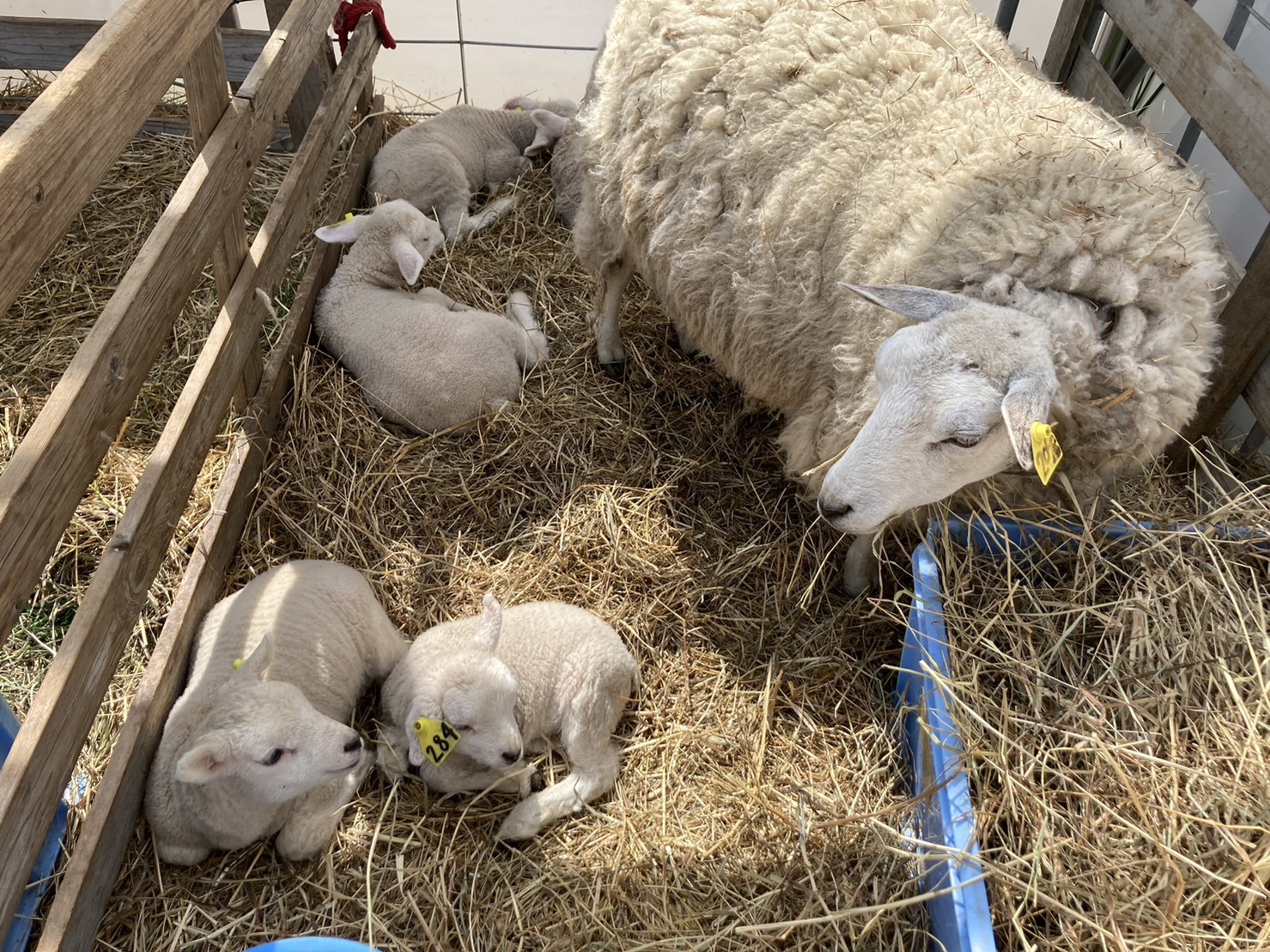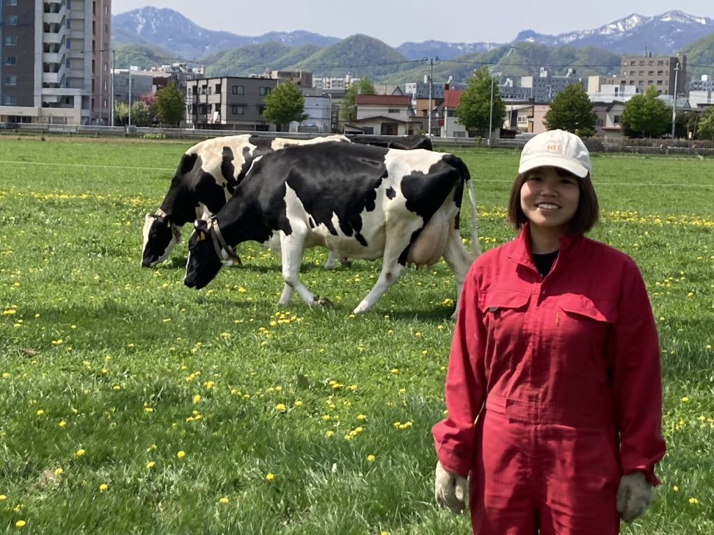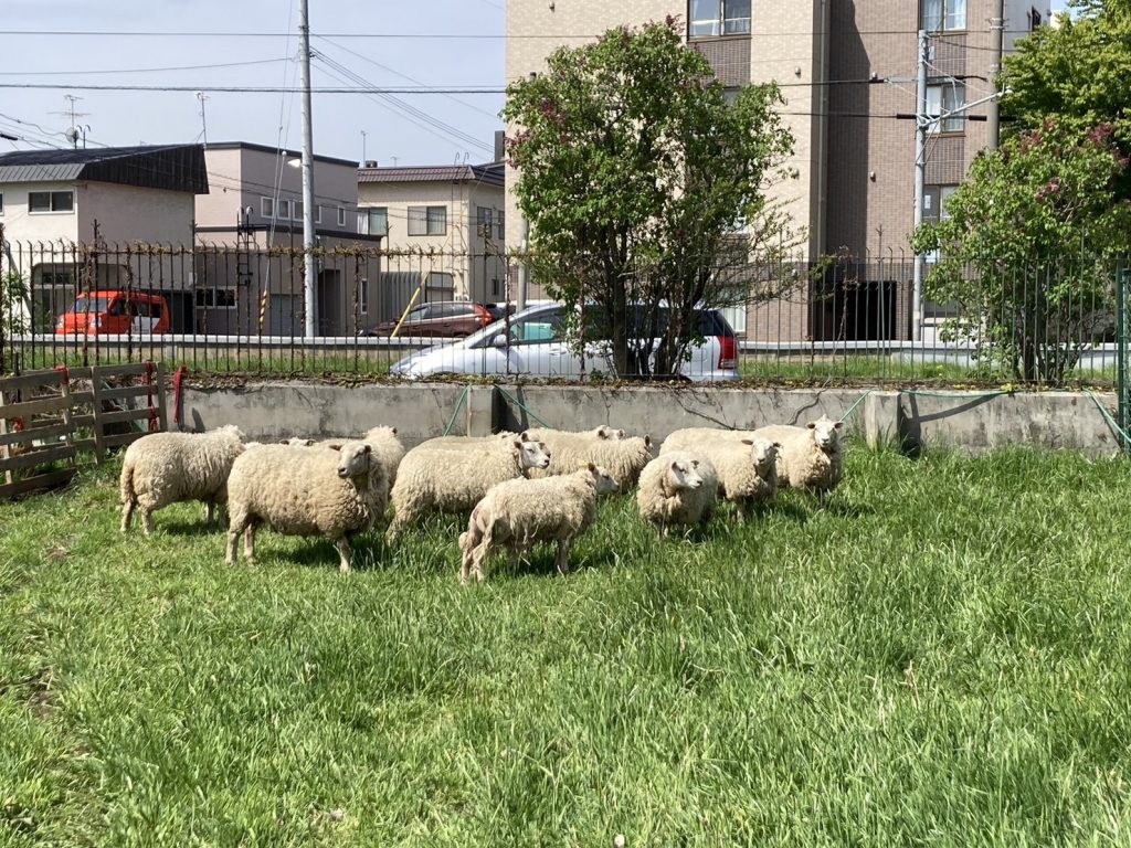 札幌本部 2023.06.01 今年も無事に羊が産まれる 5月上旬、北大農場の羊を見学させていただき、畜産科学科畜牧体系学研究室で羊や牛の世話をしている修士1年の小澤華琳さんにお話を伺いました。 【世話をしている牛と小澤さん】 まず、北大農場の牛舎付近の羊小屋で、今春産まれた仔羊たちの様子を見学させていただきました。 【生後約1か月の仔羊たち】 ―この羊たちは産まれてどれくらいなのですか?― 「この羊たちは、出生約1か月頃の仔羊たちです。例年4月での出産を目指しており、前年度11月から交配を開始します(羊の妊娠期間は約150日間)。産まれたばかりの仔羊たちは、まだ母親からの乳で飼育する必要があるため、この羊小屋(上の写真)の中で約半年間育てています。」 【哺乳ボトルからミルク(代用乳)を与えられる仔羊】 【クリープフィーディング。柵を抜けられる大きさの仔羊のみ、柵内の大麦を食べることができる】 ―この柵は何ですか?― 「この柵はクリープフィーディングと呼ばれる給餌に用いる柵で、親羊たちがくぐれないような間隔となっています。内側の飼槽(写真奥)には大麦が入っており、柵をくぐれる仔羊だけに大麦を与えることができます」 大麦は栄養価が高く、固形飼料に慣れさせ、仔牛の離乳をスムーズにさせるため、この時期に与えます。 【母羊の後ろをついて歩く仔羊たち】 ―毎年何頭ほど産まれるのですか?― 「畜牧体系学研究室では毎年約30頭の羊を生産します。10頭の雌は繁殖用として、次年度以降の育成に回します。残りの雌と雄は肥育したのち、年末から年明けに、生後約6カ月齢で出荷しラム肉にします」 【初夏の羊小屋内部。仔羊がずいぶん大きく成長している。体の大きい成羊が柵で区切られているが、仔羊たちは小屋全体を歩き回っている】 ―残りの羊たちはどこにいるのでしょうか?― 「牛の放牧地に草が生え始めるタイミングで、放牧地の外周に移動させます。放牧地の外周を5区画に分け、順番に羊たちを移動させていきます。羊は意外にもグルメで、自分の好きな草は先に食べきって、長く伸びた草は食べなくなってしまいます。そのため、牧草が伸びすぎる前に羊に食べてもらえるように、順繰りに牧草地を移動させる必要があります」 【小屋の外へと移動した仔羊たち】 【昨年度より育成している若い雌羊たち。左には牧草地を分けるための柵が見える。今年の秋から交配をかける予定】 【左右で食べられ方が異なる様子。左は好んで食べられており、禿げかかっている】 ※畜産科学科畜牧体系学研究室および北海道大学北方生物圏フィールド科学センターの許可を得て撮影しました。 (さっぽろ農学校リポーター・林芳弘=D3、写真も)