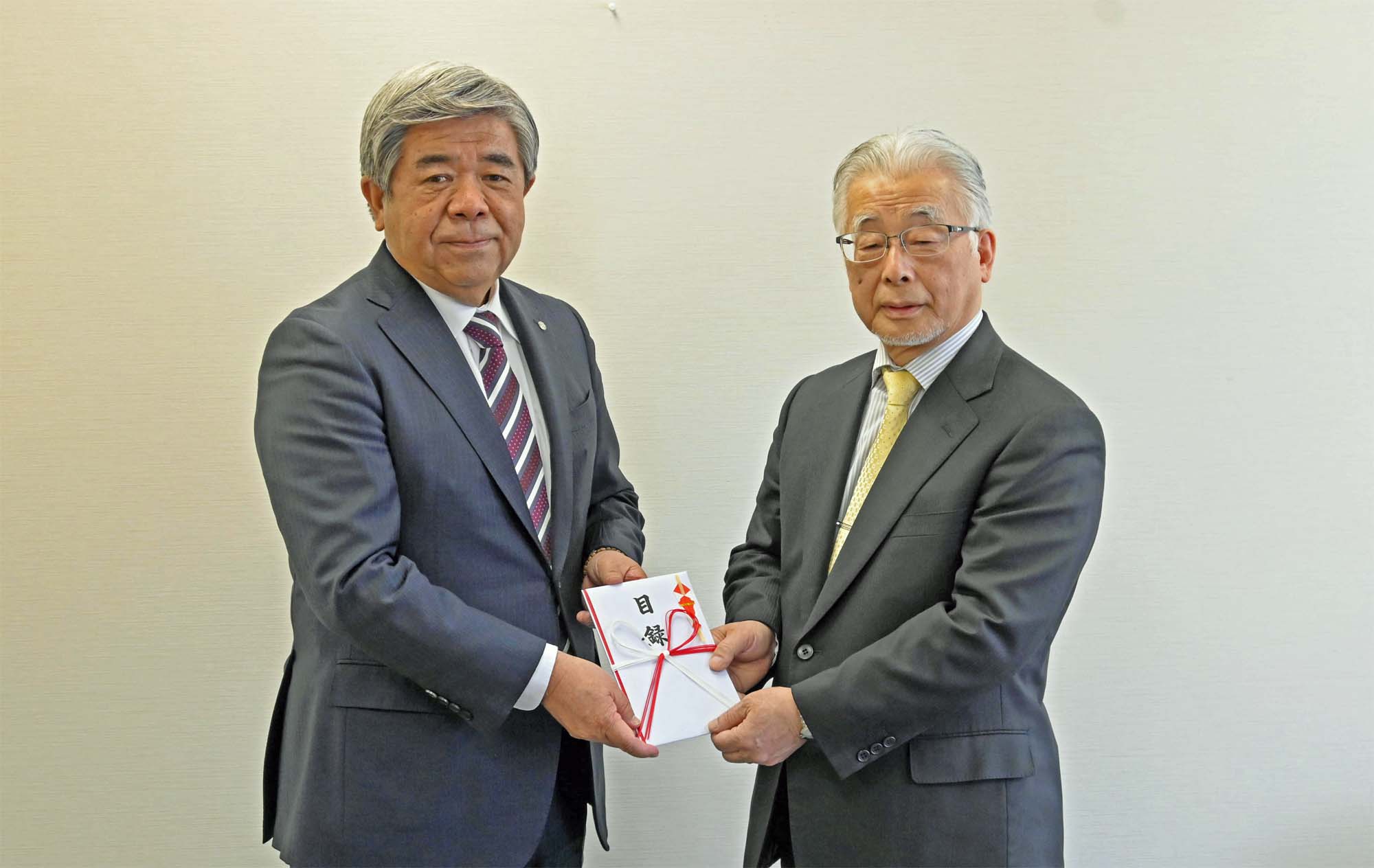 札幌本部 2021.04.11 新渡戸記念館建設へCF寄附金贈呈 白糠町のふるさと納税クラウドファンディング(以下「CF」)を通して寄せられた「新渡戸稲造遠友夜学校記念館(仮称)」建設資金寄附金の第一期分(2020年12月~2021年3月)2,285,000円が4月9日、白糠町から一般社団法人「新渡戸稲造と札幌遠友夜学校を考える会」(以下「考える会」)に贈呈されました。 記念館は、同法人が、札幌遠友夜学校跡地(札幌市中央区南4東4新渡戸稲造記念公園内)に、2023年竣工を目指しています。次代の北海道と日本を担う人々のために「新渡戸稲造」と北海道の歴史、農業農学の大切さを学び親しむ拠点としていこうと建設計画が進められており、目標の5,000万円に対して、2013年以来の一般寄附金と今回のCFを合わせて約3,300万円に達しました。 当会は、この記念館事業を、新渡戸先輩(札幌農学校第二期生)の国際的事績と思想を引き継ぐ農業農学振興事業として位置付け、連携・協力をしています。松井理事長はじめ複数の理事、相談役が「考える会」の役員を担い、多くの同窓生や北大関係者も賛同者として会を支えています。 この日は、贈呈式が北海道自治会館で行われ、白糠町の棚野孝夫町長(写真左)から、考える会の松井博和理事長(写真右)に目録が手渡されました。棚野町長は「新渡戸先生と札幌農学校が、北海道開拓・農業開発へ果たされた貢献は多大なものがあります。道民が先人の努力に感謝し、学べる場が欲しかった。特に、地方から札幌に行く修学旅行生が北海道と一次産業の歴史を学ぶ施設になればうれしいとも思っています。その意味を込めてCFに協力させていただきました」と記念館建設にエールを贈り、松井理事長は「多額の寄附金をまとめていただき、誠にありがとうございます。利他主義、共生の思想を中心とした新渡戸イズムと科学を柱に、次代の育成にも役割を果たしていきたい」と謝辞を述べました。 ふるさと納税CFは、第一期はインターネット上の5サイトで展開されていました。このうち、「ふるなび」「ふるさと納税ニッポン」「楽天ふるさと納税」の計3サイトは第二期を4月から始めており、寄附期間を2021年12月末まで継続することが決まっています。また「ふるさとチョイス」サイトは4月27日~6月26日に再開します。CFではない一般寄附は2022年末までの予定です。 今回のCFは、白糠町が代理事務を担った「代理寄附」と呼ばれるもの。白糠町は寄附金を受け取らずに専ら事務を分担し、全額を「考える会」に贈ることになっています。同町がふるさと納税クラウドファンディングの代理寄附事務を担ったのは、北海道胆振東部地震被災地支援以来2回目です。 ふるさと納税CFは、寄附者が、年間所得額に応じた上限額内で、寄付額のうち2,000円を手数料として差し引いた全額を、住民税控除と所得税還付のかたちで受け取ることができる仕組みです。つまり、本人負担は2,000円だけで、国税と地方税のうち任意の額を、建設資金にまるごと移せるシステムなのです。限度額内であれば、寄付額は2,000円でも多額でも、納税者の負担は変わりません。なお、返礼品のあるCFもありますが、本CFでは返礼品の用意はありません。 当会としても、会員の皆さんはじめ多くの皆さんに、このふるさと納税CFによる寄附をご検討いただけるよう、広く呼び掛けています。 贈呈式は、北海道新聞社、北海道協同組合通信社、北海道建設新聞社が取材し、すでにいずれも記事が掲載されています。