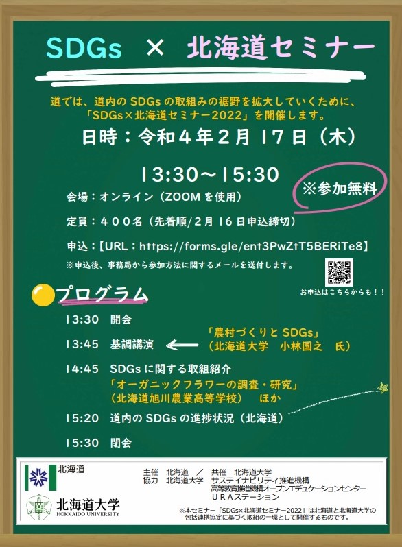 道主催、北大共催のセミナー情報を共有します。オンラインで視聴できます。事前申し込みを。