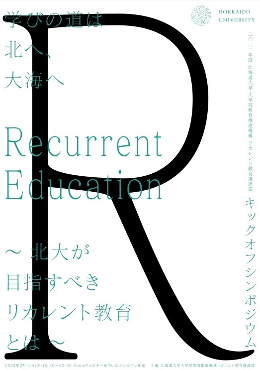 札幌本部 2023.02.20 3月14日にリカレント教育シンポ 北大大学院教育推進機構リカレント教育推進部は3月14日午後6時半から、キックオフシンポジウム「学びの道は北へ、大海へ~北大が目指すべきリカレント教育とは~」を開催します。 話題提供者は次の3人です。 城取 一成さん((株)慶應学術事業会 取締役 学術事業部長/慶應丸の内シティキャンパス ゼネラル・マネジャー) 杉江 和男さん(北海道大学校友会エルム会長/元DIC(株)代表取締役社長・取締役会長) 保谷 範子さん(慶應丸の内シティキャンパス ラーニングファシリテーター マネージャー) 全編、Zoomウェビナーによるオンラインで行われます。下のリンクから事前登録ができます。3月7日締切です。 https://us06web.zoom.us/webinar/register/WN_izNbApmJTFa2C7n5tNV4Eg 詳細は、北大ホームページの以下をご参照ください。 https://www.hokudai.ac.jp/events/2023/02/post-981.html